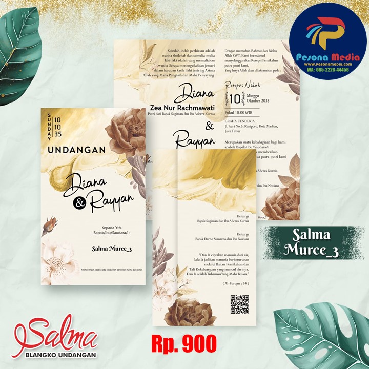 Beberapa kelebihan Cetak Undangan di Pesona Media adalah : Gratis Plastik, Label Nama, Kartu Terima Kasih serta Bonus Spesial Undangan Video dan Undangan Web. Dibawah ini adalah beberapa katalog kami, silahkan di pilih :